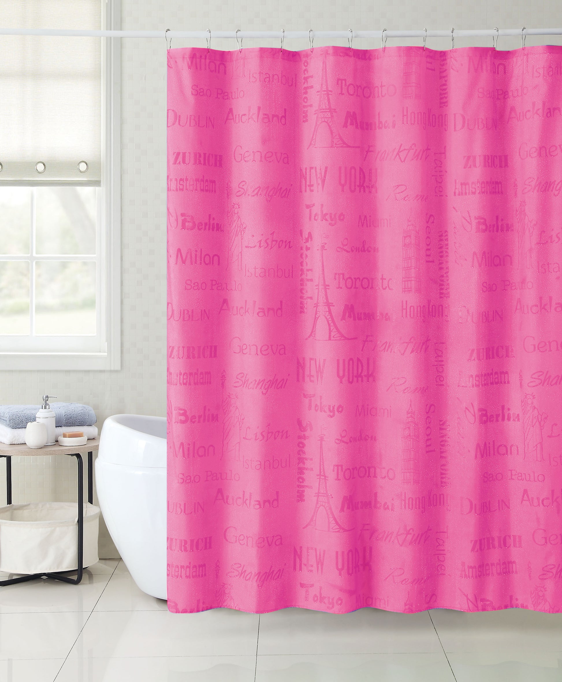 Royal Bath Magic Appearing Landmark Cities Waterproof Fabric Shower Curtain (72" x 72") with 12 Matching Hooks