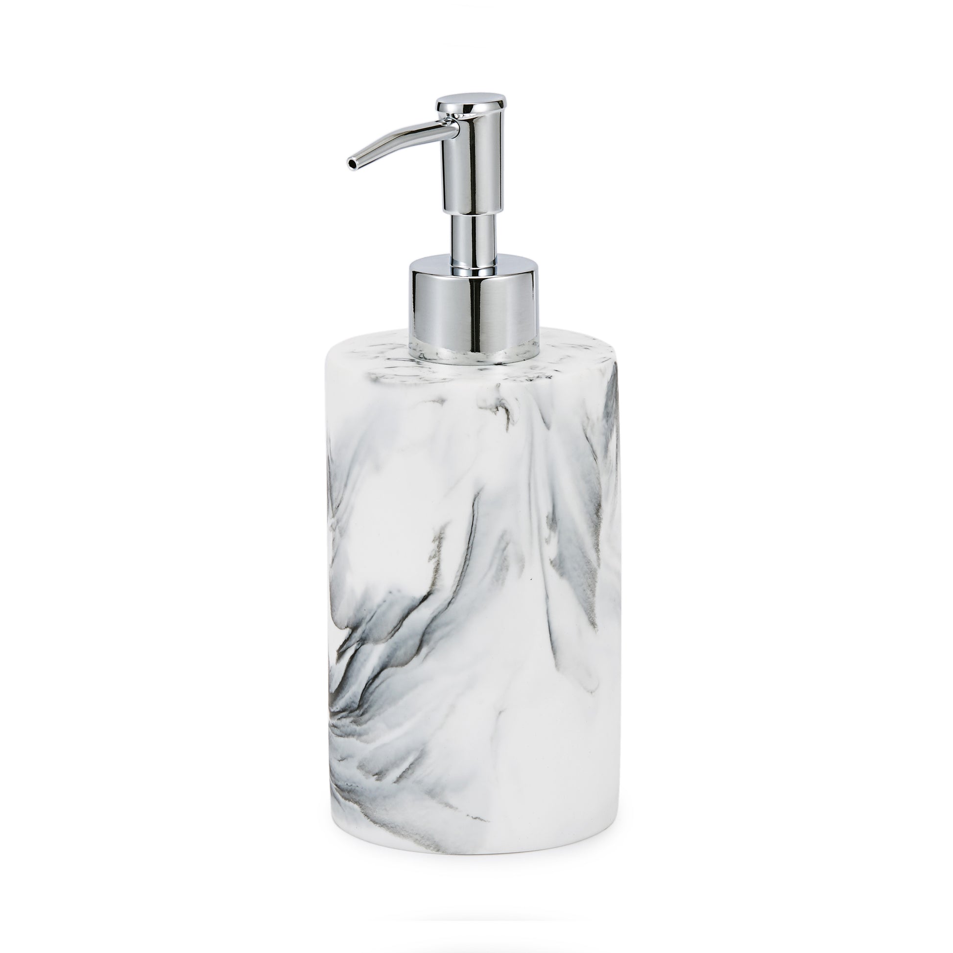Crafted from resin and then injected with ink by hand to create stunning contrast and bold shapes that grant each piece uniqueness, making them a chic addition to the modern bathroom. Beautify your bathroom with this contemporary design! Made of Resin injected with ink Measures: 2.76"Dia. x 5.79"H