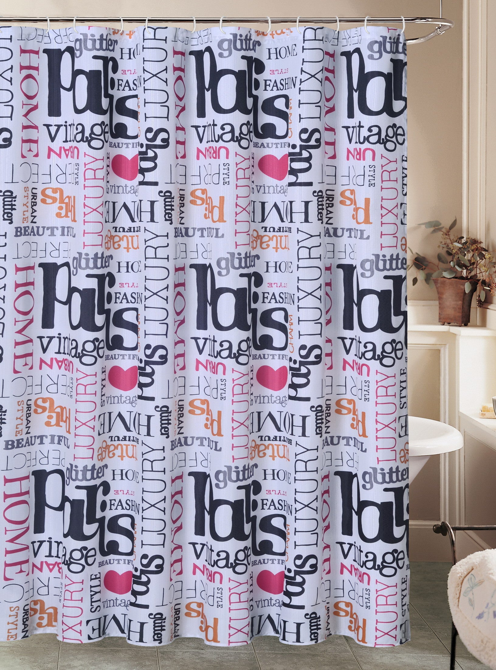 Add style to your bathroom with this Paris Themed Canvas Fabric shower curtain! Comes with 12 shower curtain hooks. Machine washable. 100% Polyester Measures 70" x 72" Made of 100% Polyester Machine washable Roller hooks included Print Textured Canvas Fabric