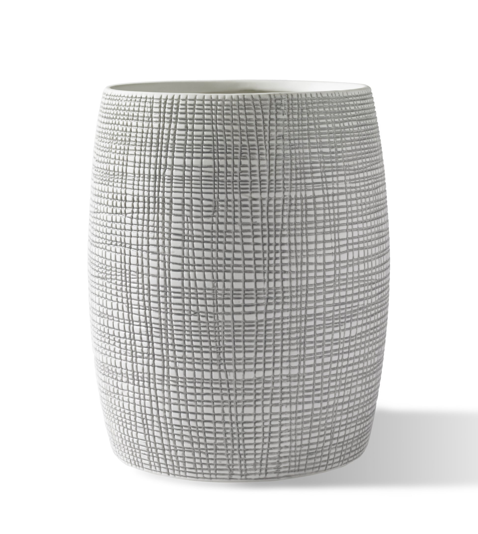 Royal Bath Raffia Embossed Porcelain Wastebasket 7.09"D x 9.45"H