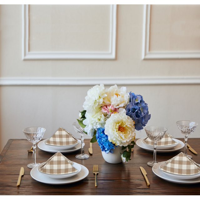 Traditional Elegance Buffalo Check Dinner Table Napkins - Taupe - Set of Four